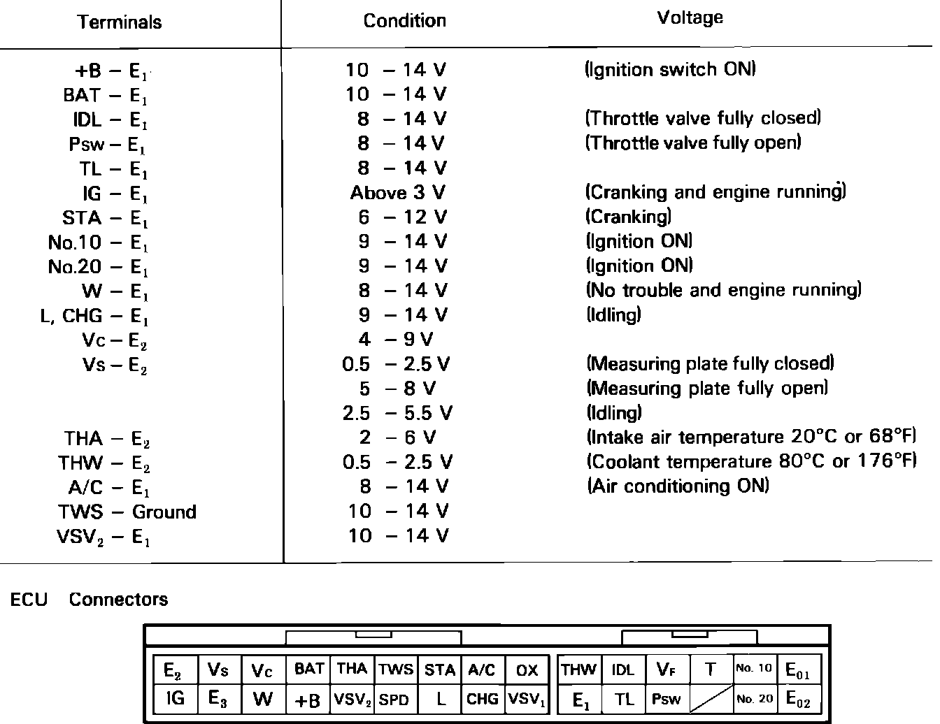 The following procedure allows separate inspection of each EFI circuit. This test is meant to be performed in conjunction with the troubleshooting, self diagnostic and component test procedures, and allows system wiring harnesses to be checked from the EFI computer connector.