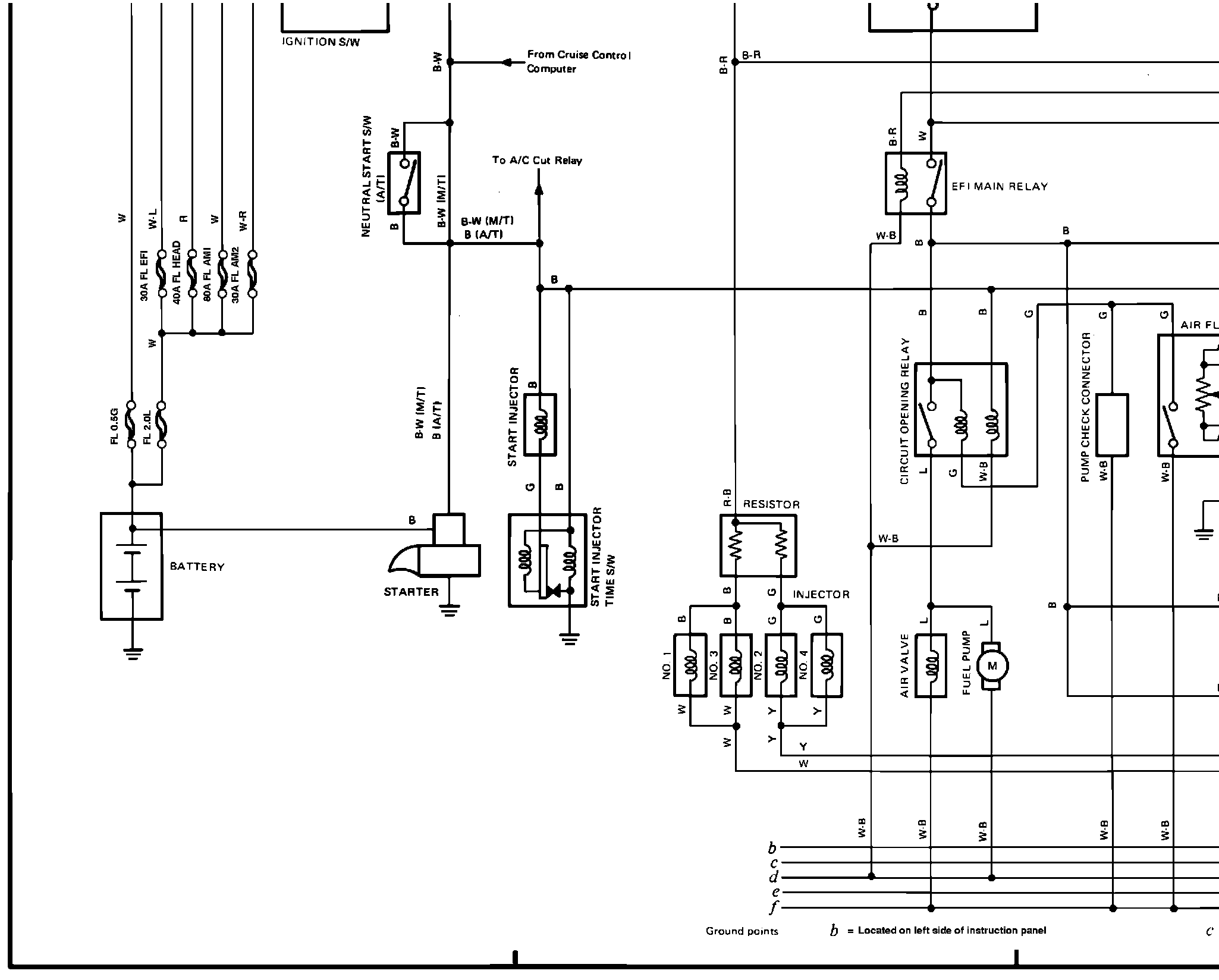 !�T��T��T��T��T��T� UFig. 57a Power Supply, Starting System, Fuel System, Ignition System, Charging System, Combination Meter, Back-Up Lights, and Overdrive Wiring Diagram: