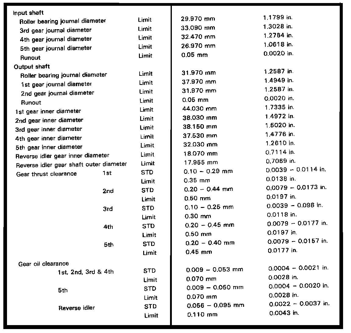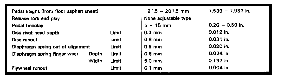 S50 5-spd M/T, Clutch Clearances: