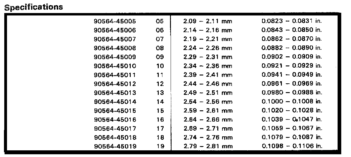 S50 5-spd M/T, Clutch Hub/Input Thinkness Cont.: