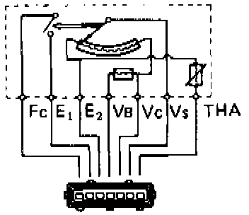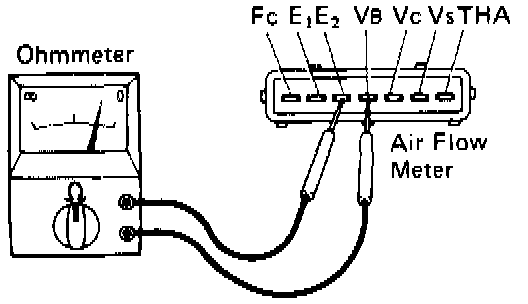 NOTE: Resistance between terminals E2 and Vs will change in a wave pattern as the measuring plate slowly opens.