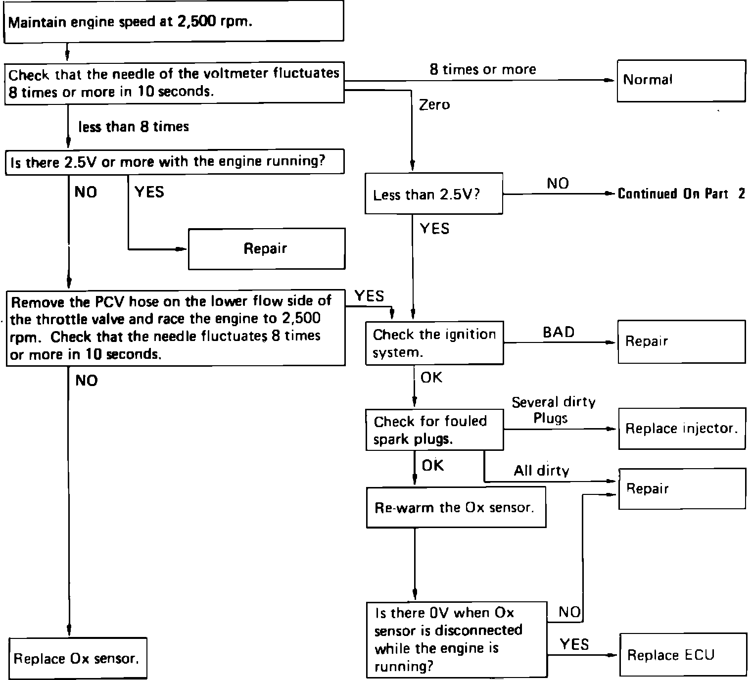 Fig. 69 Oxygen sensor diagnosis chart: