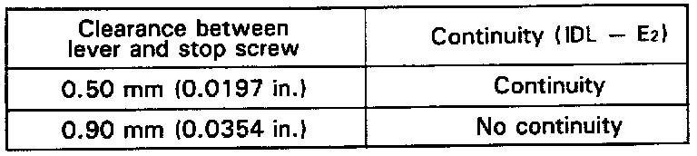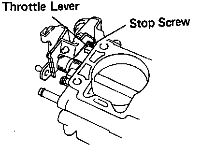 Check that there is no clearance between the throttle stop screw and throttle lever when the throttle valve is fully closed.