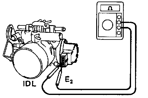 (b) Connect the ohmmeter to the throttle position sensor terminals IDL and E2.