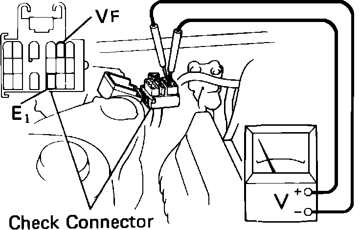 1. Run engine until it reaches normal operating temperature, then connect voltmeter to EFI service connector as shown in Fig 5.