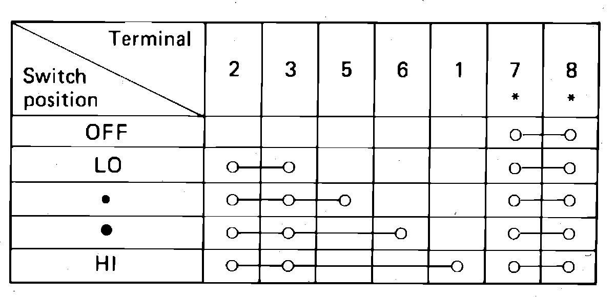 Fig. 33 Heater Blower Switch Continuity Test: