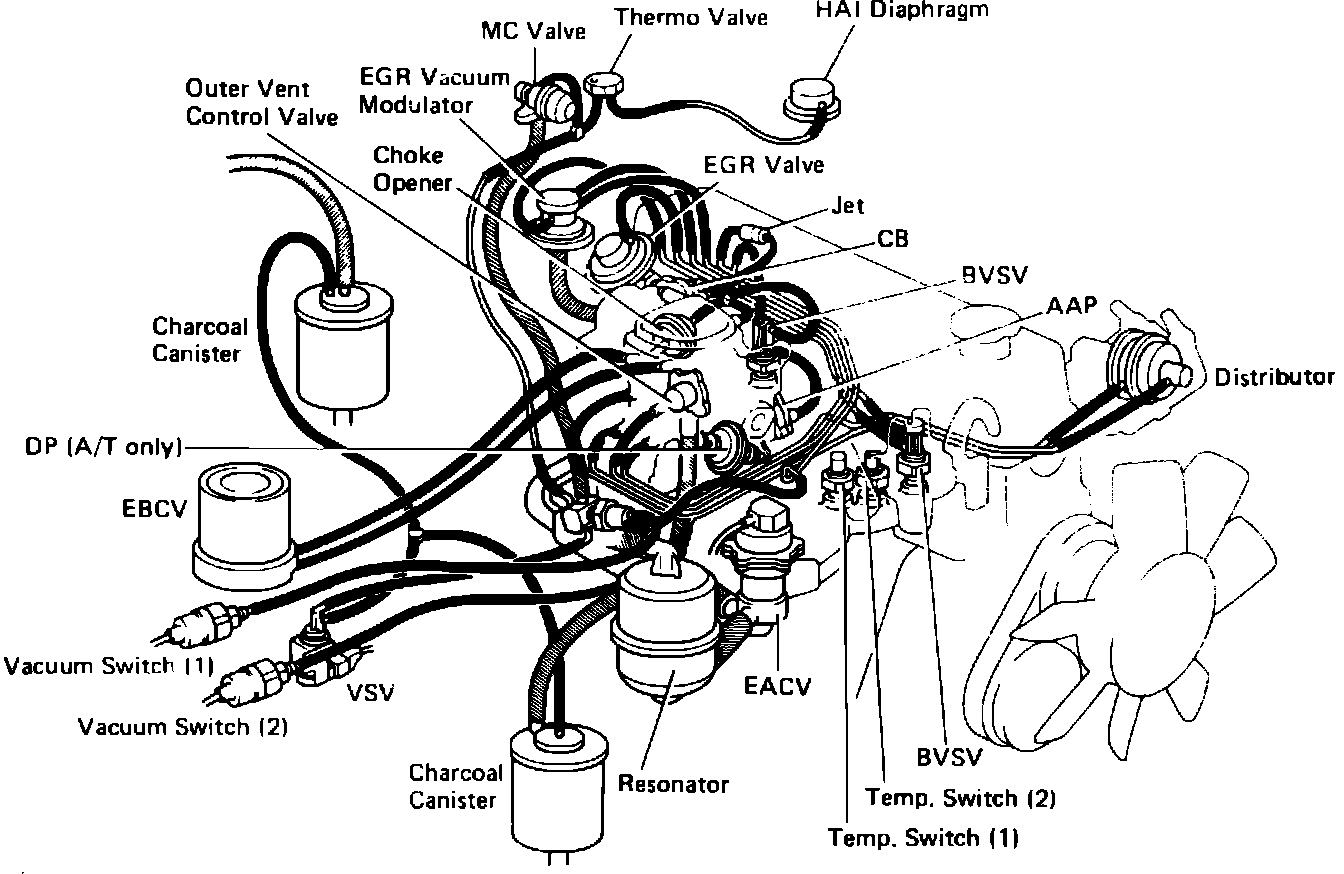 Fig. 17 Emission control system & engine compartment reference diagram.: