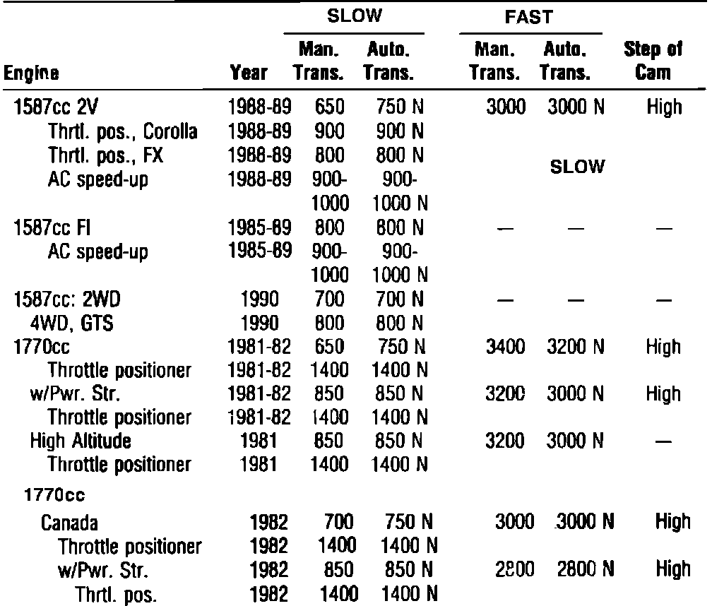 Fig. 6 Idle Speed W/O Computer Control Specifications: