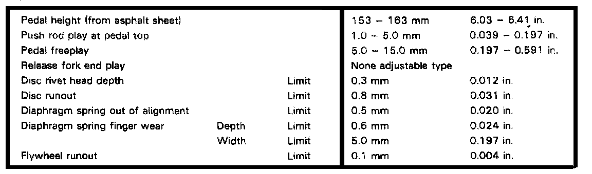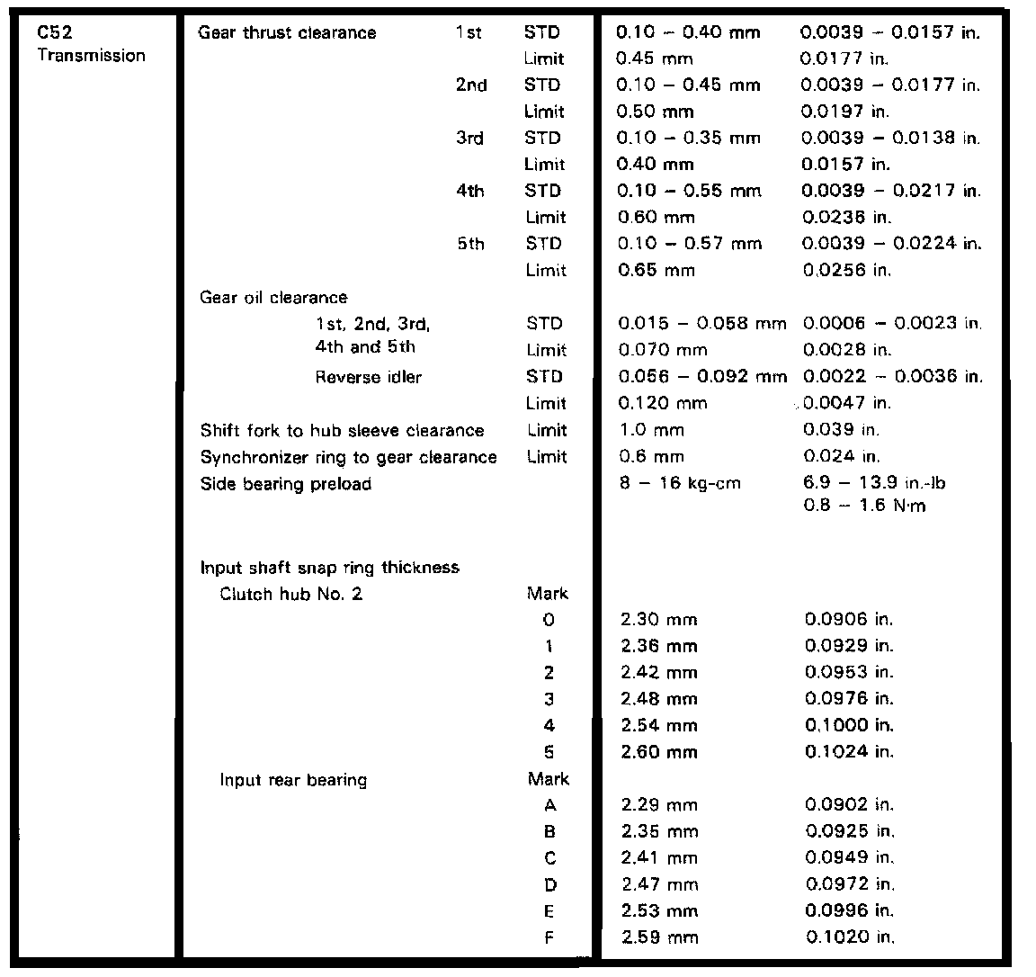C52 5-spd M/T, Clutch Clearances:
