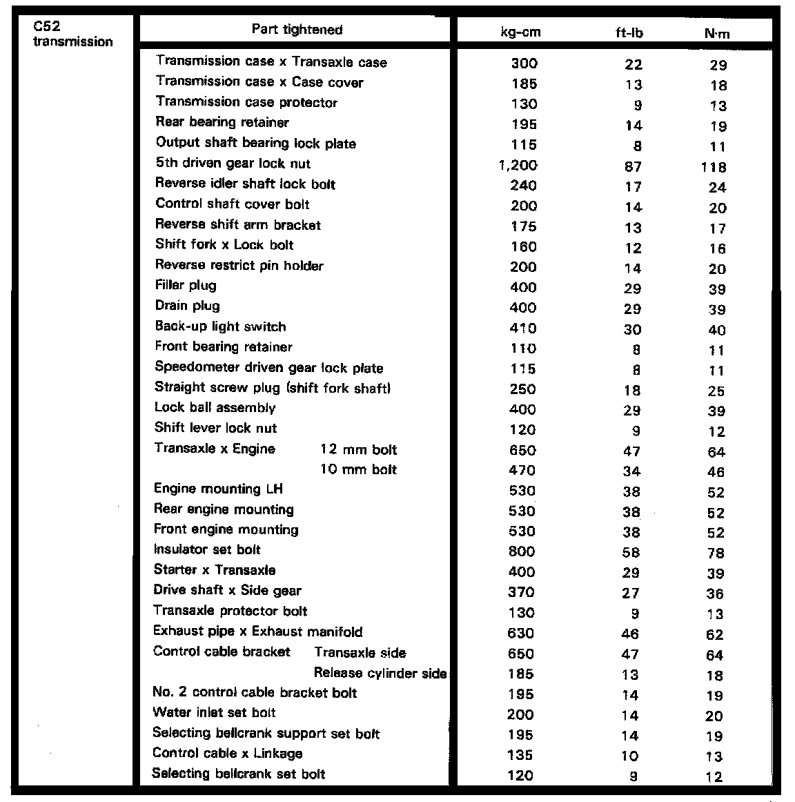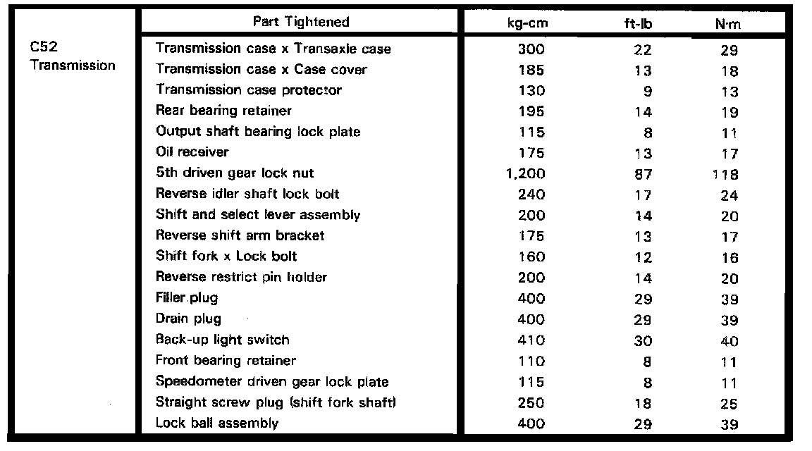 C52 5-spd M/T, Transmission Torque: