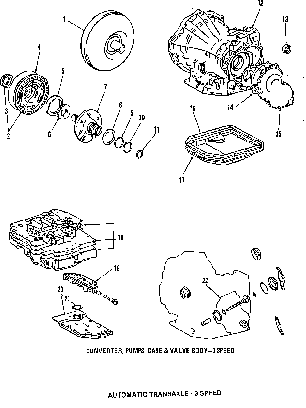 Case, Converter, Oil Pan & Valve Body, 3 Speed: