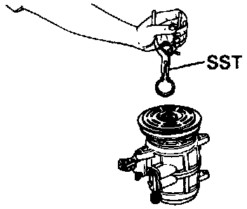 7. Using the SST(07114-84020), remove the snap ring and the stator.