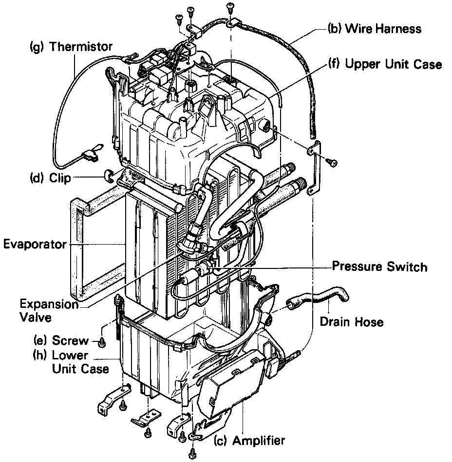 3. Remove the packing and heat sensing tube from the suction tube of the evaporator. Remove expansion valve.