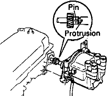 (b) Align the protrusion on the housing with the pin of the spiral gear drill mark side.