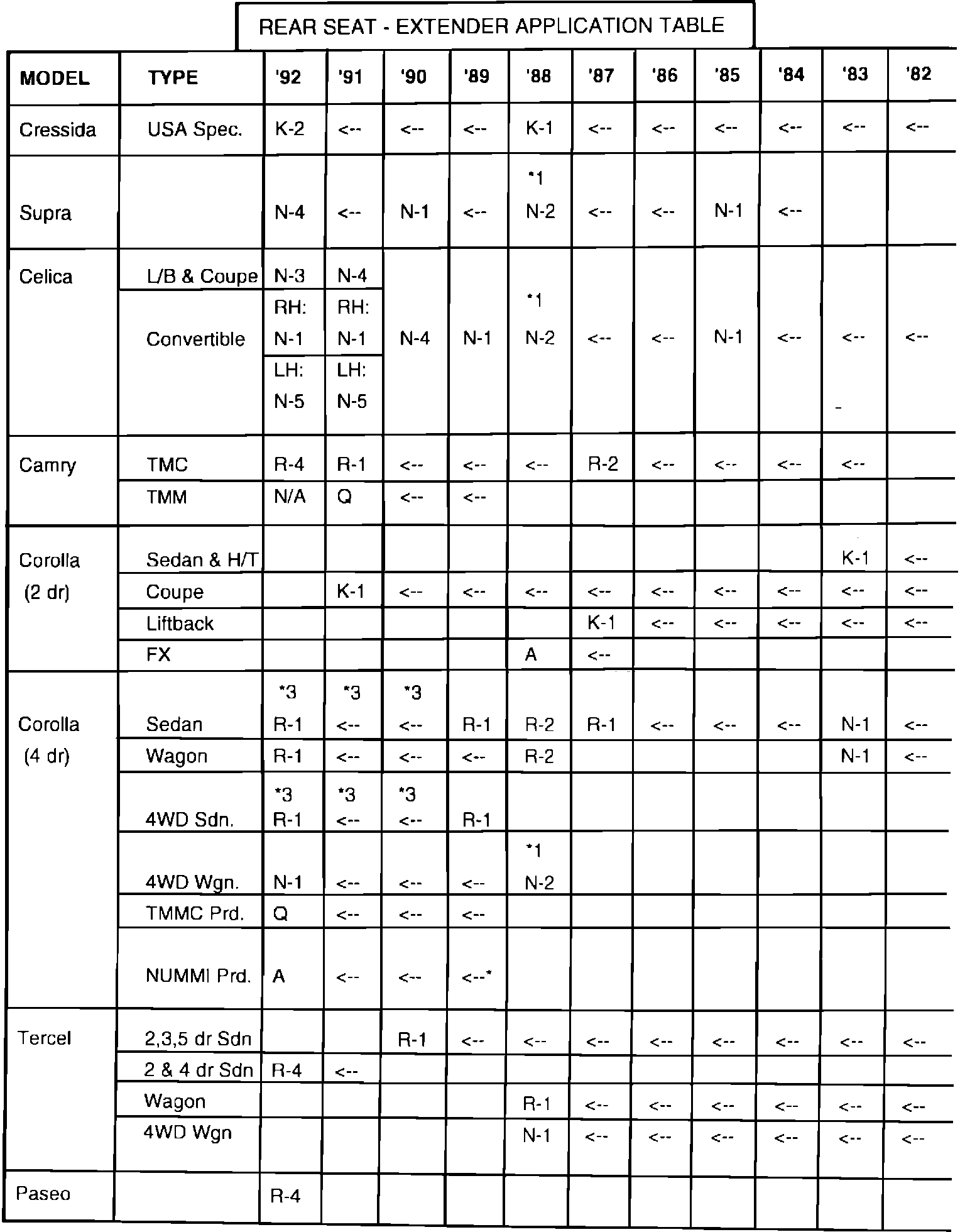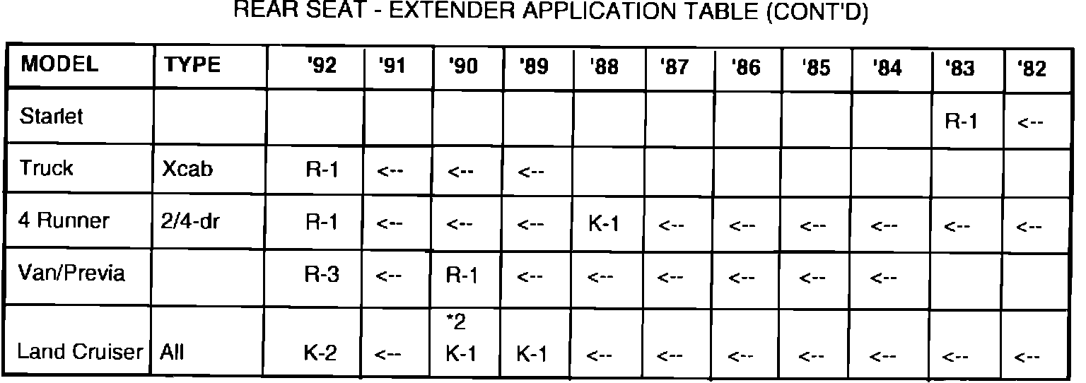*2 For Land Cruiser (FJ80) production after January, 1990, extender "K-2" must be used.