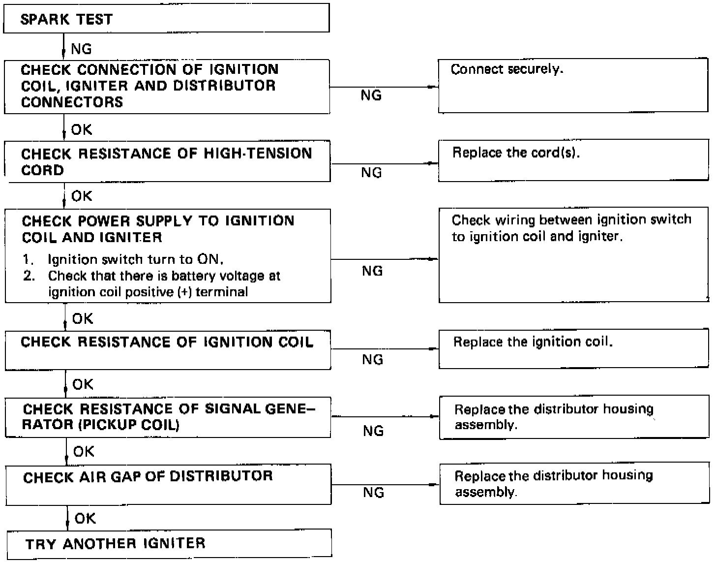 If the spark does not occurs, perform the test according to the chart.