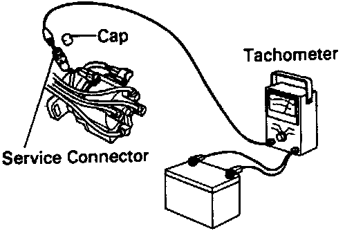 - Connect the test probe of a tachometer to the service connector of the distributor.