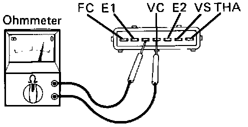 NOTE: Resistance between terminals E2 and VS will change in accordance with the measuring plate opening. If the resistance is not as specified, replace the meter.