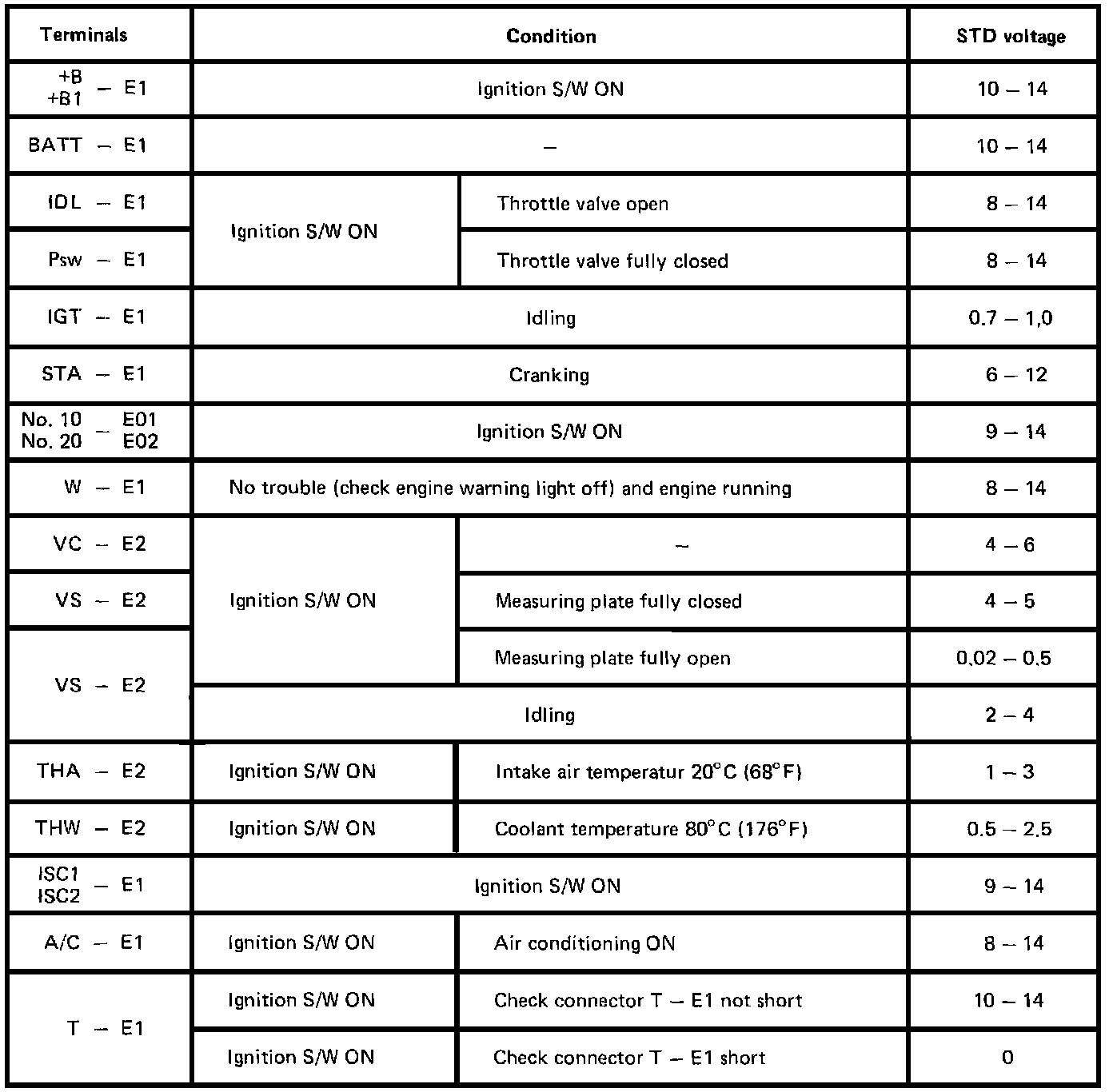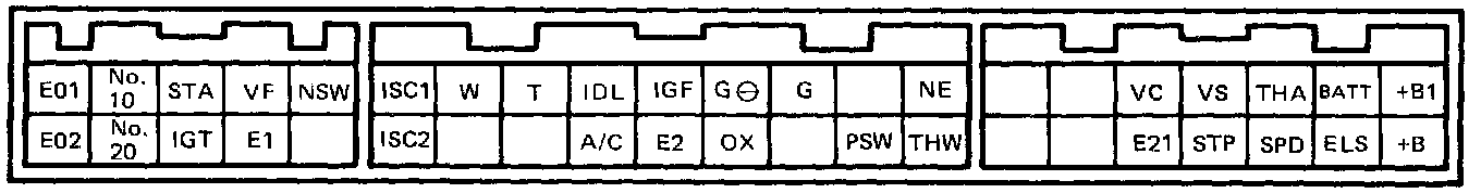 NOTE: The EFI circuit can be checked by measuring the and voltage at the wiring connectors of the ECU. Check the voltage between each terminal of the wiring connectors.