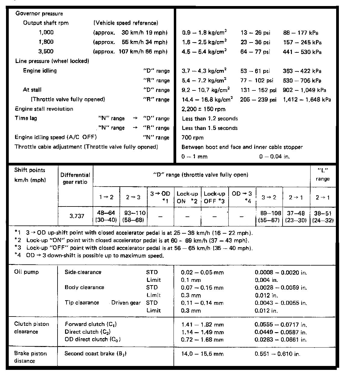 A140L 3-spd O/D A/T, Line Pressure/Shift Points: