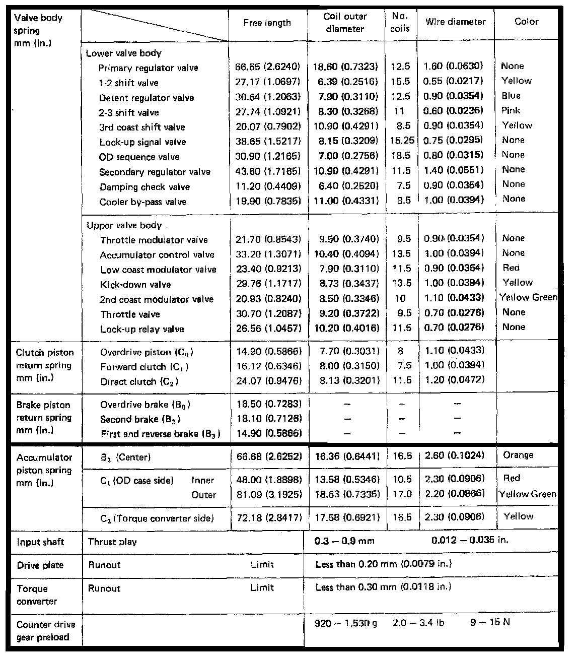 A140L 3-spd O/D A/T, Valve Body/Clutch Clearances: