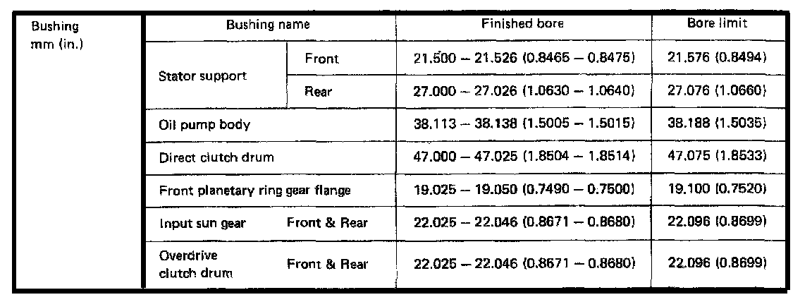 A140L 3-spd O/D A/T, Bushing Clearances: