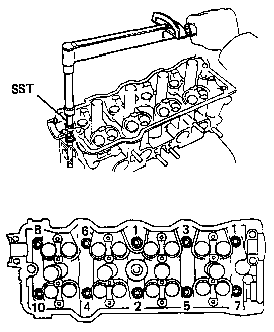 3S-FE Cylinder Head Tightening Sequence: