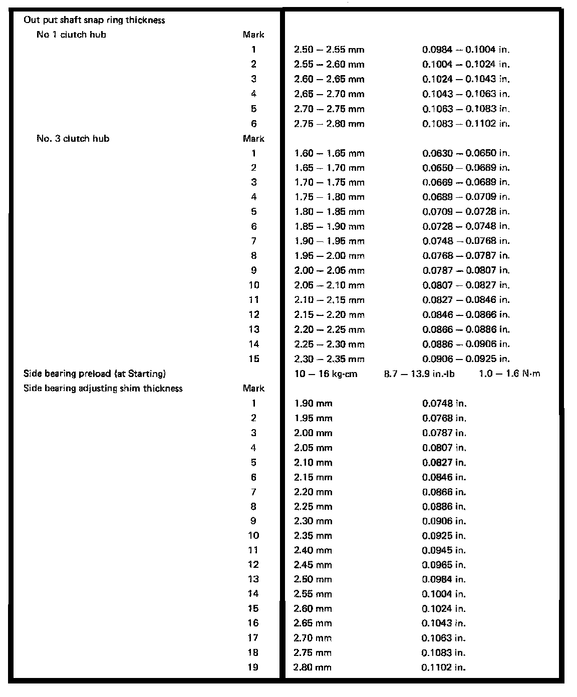 S53 5-spd M/T, Clutch Hub/Bearing Thickness: