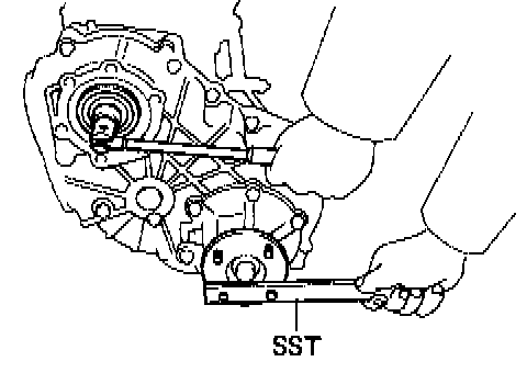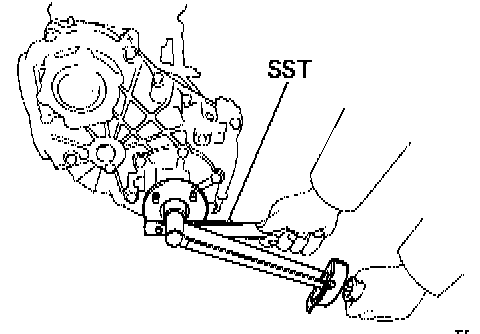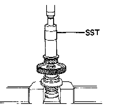 (b) Using SST to hold the companion flange, install the companion flange lock nut. SST 09330-00021