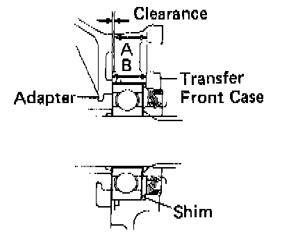 (a) Measure the difference of A and B (left), and select a shim of a thickness so the gap between the transfer adapter and front case is within the standard clearance.