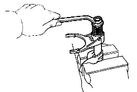 NOTE: Use a set of soft jaws in the vise to protect the shift fork.