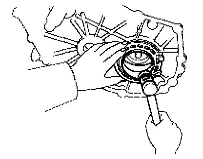 NOTE: Align the bearing retainer rib with the case.