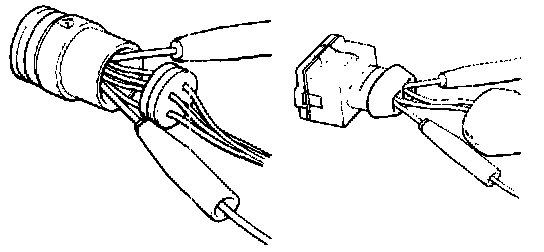 b. Insert the test probe into the connector from wiring side when checking the continuity, amperage or voltage.