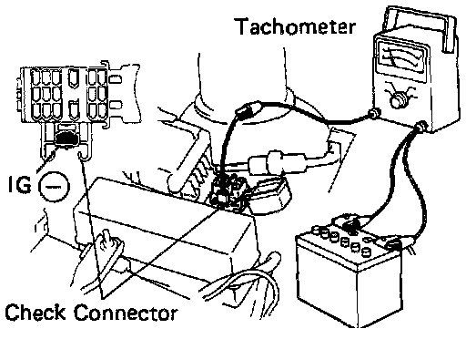 2. When a tachometer is connected to the system, connect the tachometer test probe to the check connector terminal IG (-).