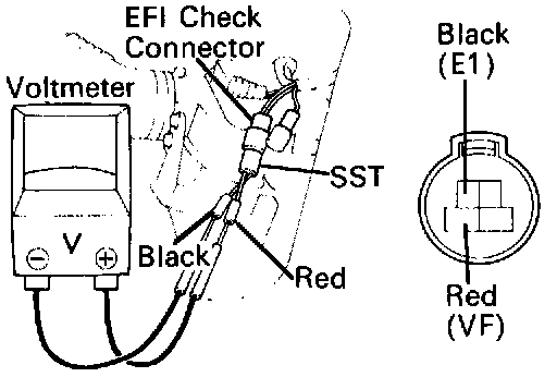 Connect SST to the EFI check connector and connect a voltmeter to SST.