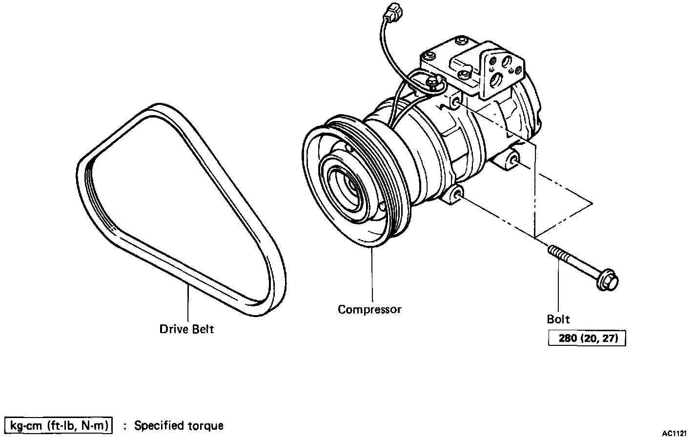1. Install compressor with four mounting bolts.