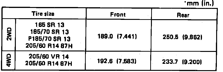 Fig. 4 Ride Height Specifications. 1989 Celica: