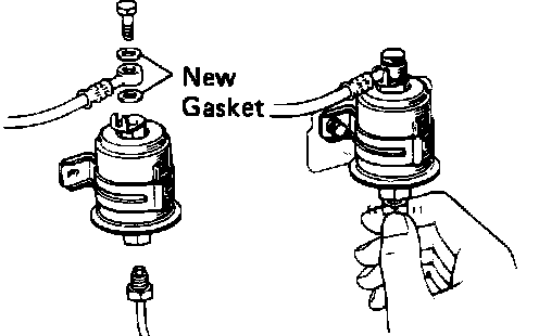 3. Slowly loosen the filter union bolts. Some gasoline may escape, so ensure that the potential for fire is minimized.