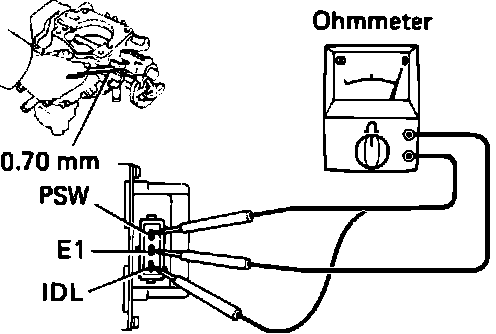2. Connect an Ohmmeter to terminals IDL and E1 of the TPS after removing the connector.