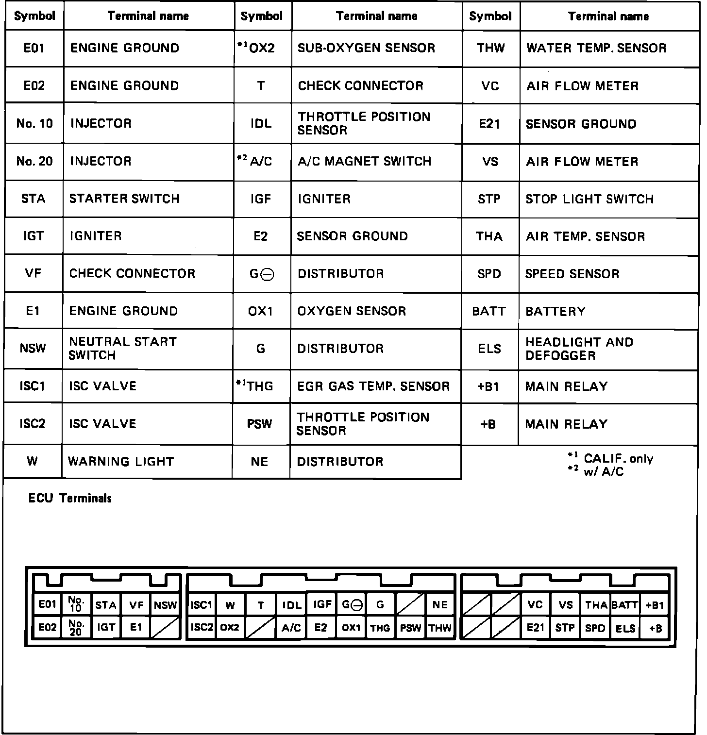 ECU Terminal Pin-Out: