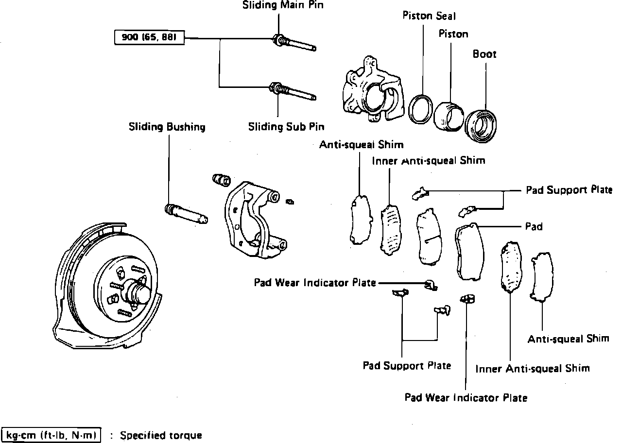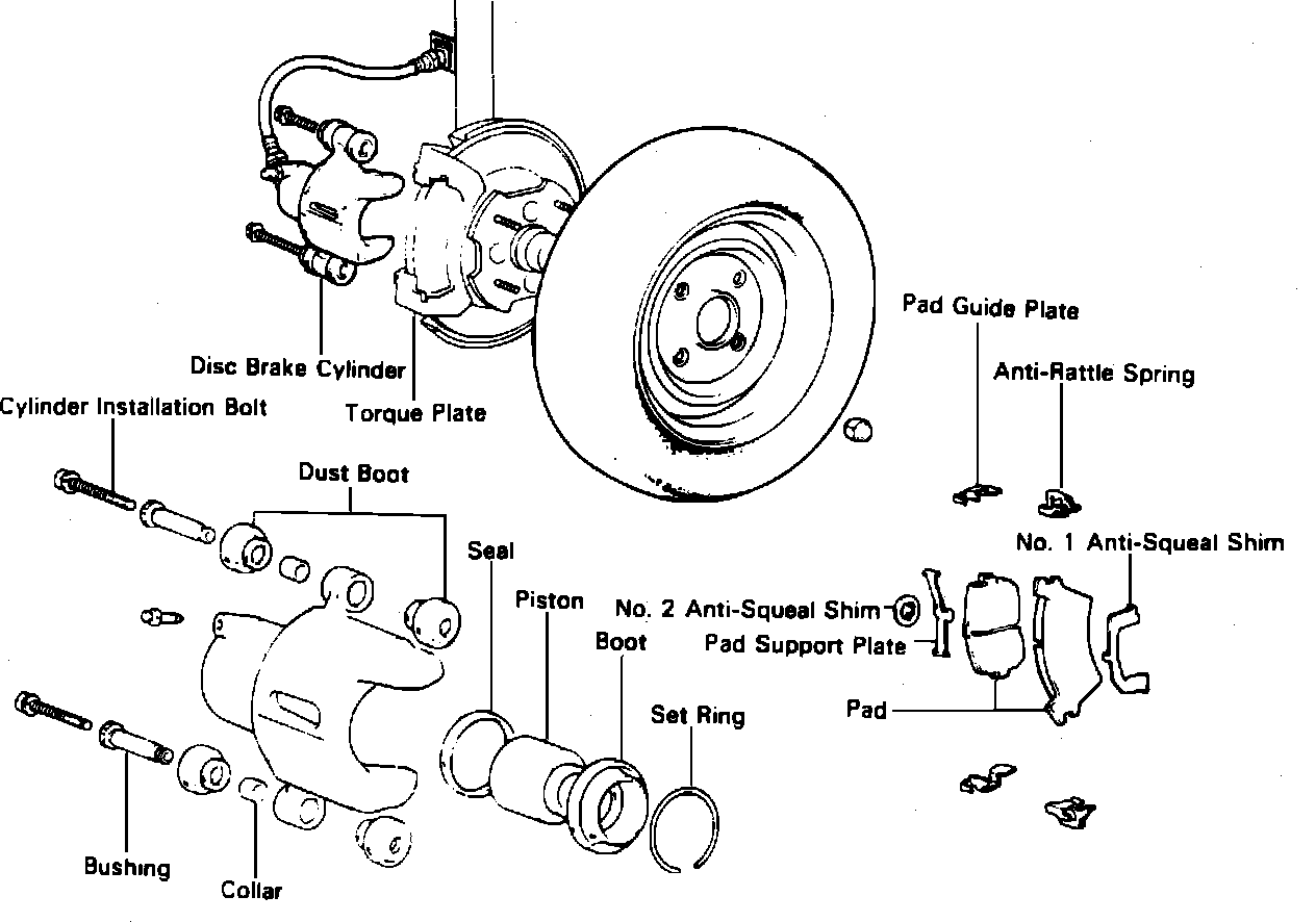 Fig. 6 Exploded View Of FS17 & F18 Disc Brake Assembly. 1990 2WD: