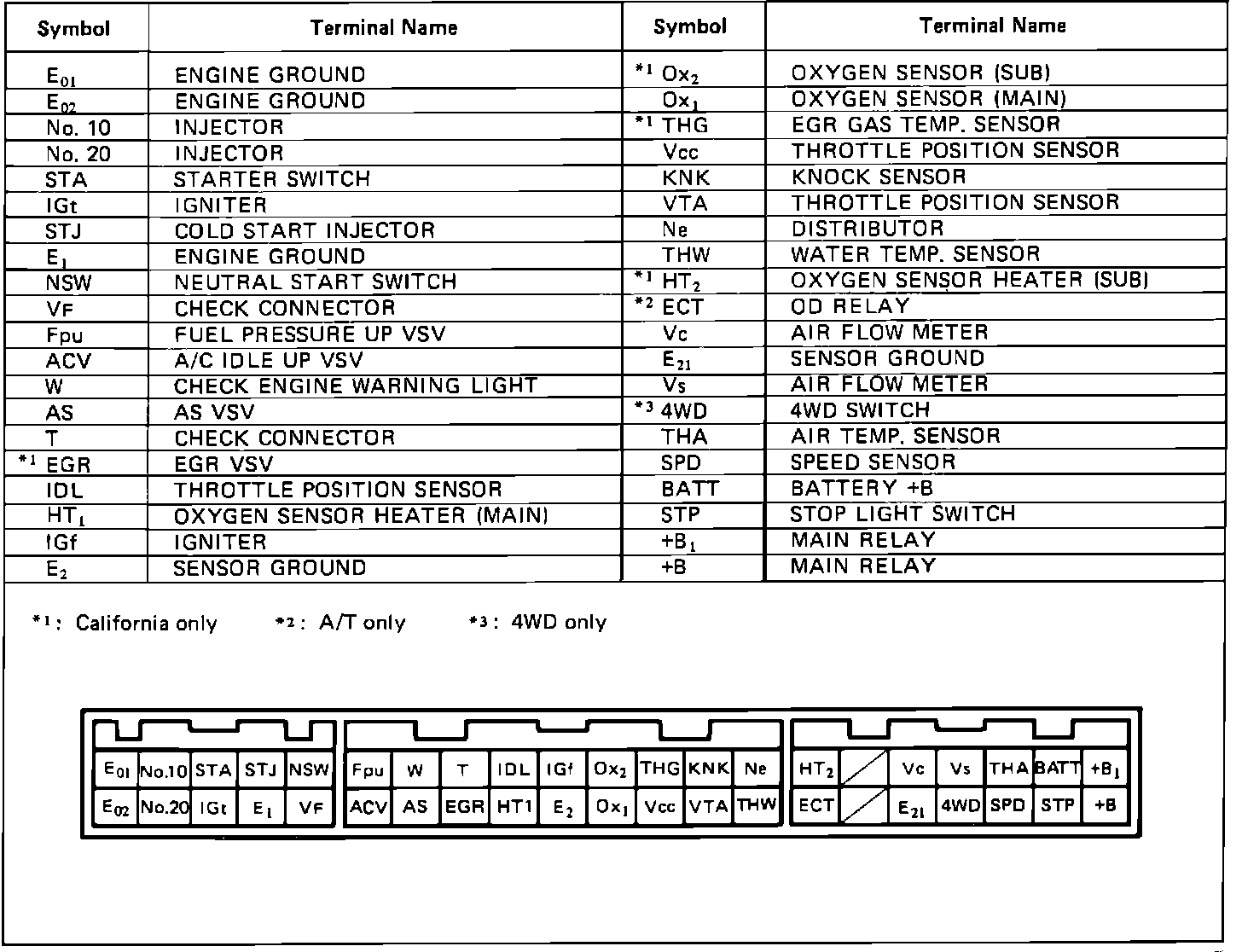 ECU Component Pin-Outs (All Except 4WD A/T):