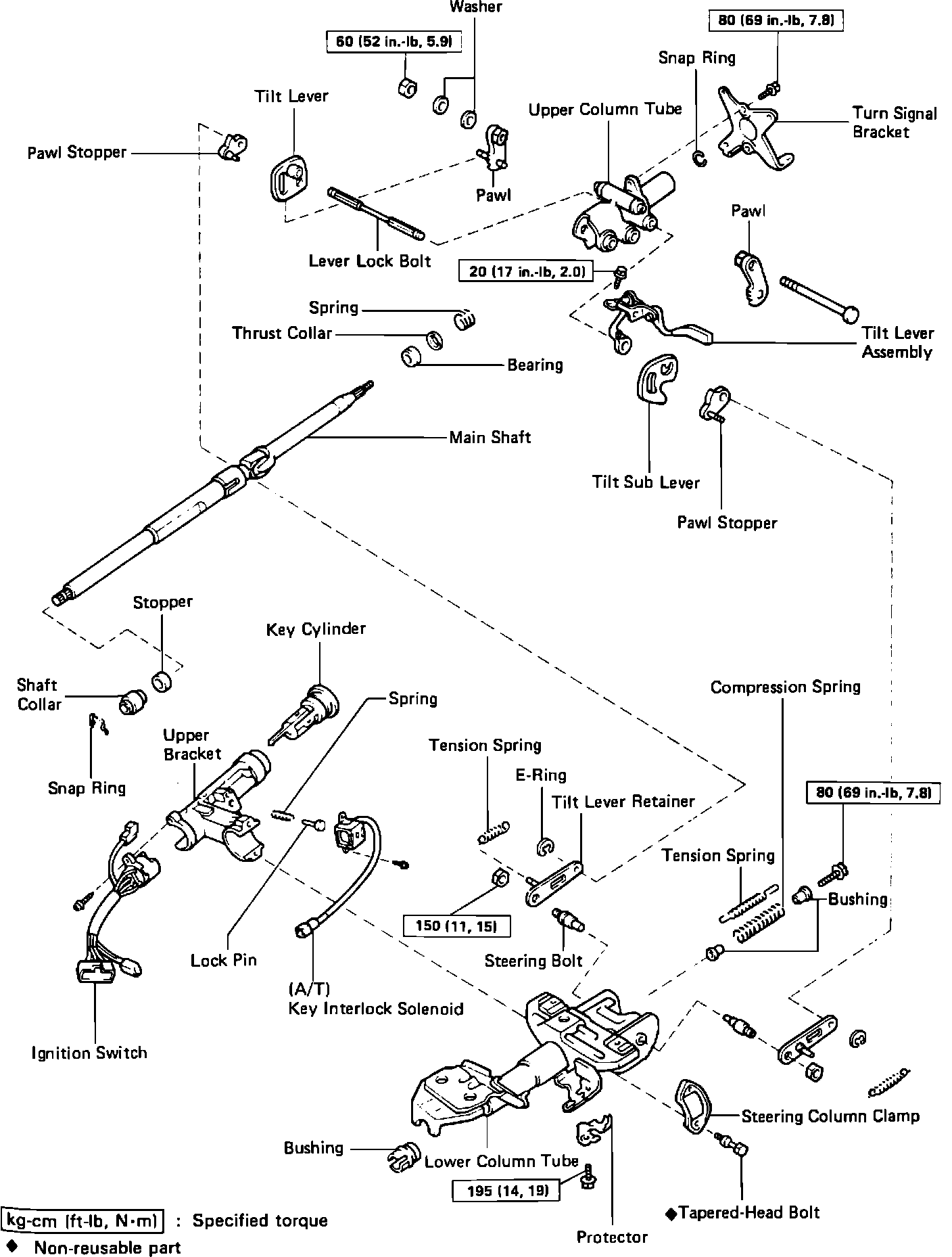 Fig. 26 Exploded View Of Steering Column. 1989-91 Pickup & 1990-91 4Runner w/Tilt Column: