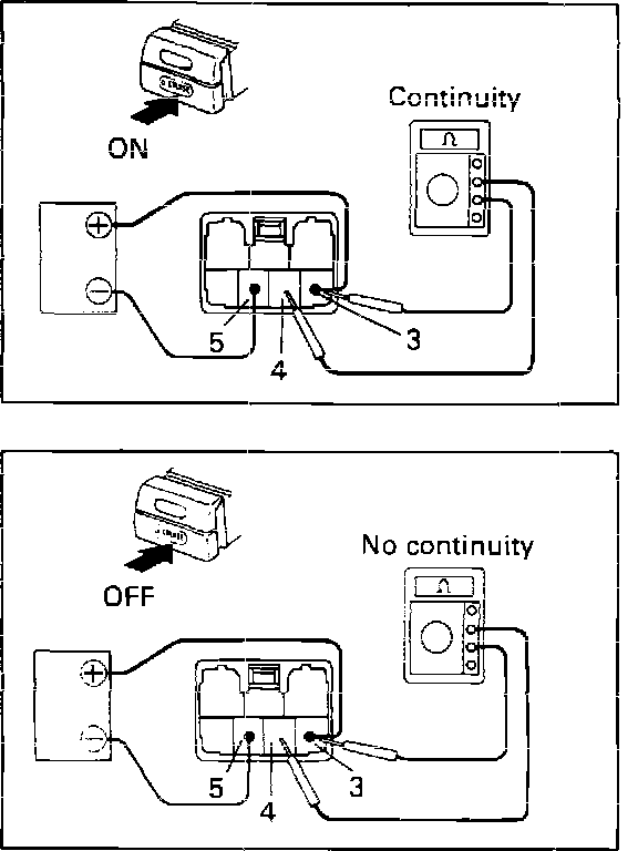 2. Check that there is continuity between terminals 3 and 4 with switch pushed "ON" and no continuity with switch pushed "OFF."