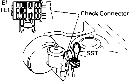 3. Using a service wire, connect terminals TE1 and E1 of the check connector. Fig. 46