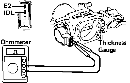2. Connect an Ohmmeter to terminals IDL and E2 of the TPS after removing the connector.