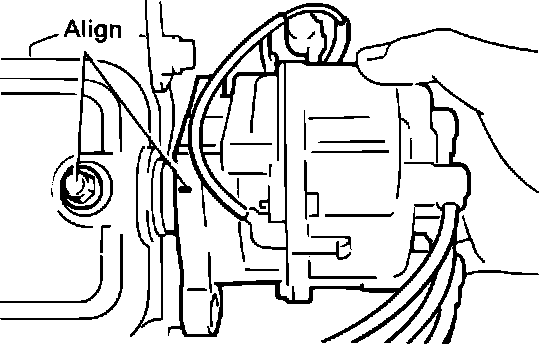 4. Install the distributor and lightly tighten hold down bolts.