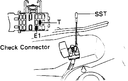 3. Using a service wire, connect terminals TE1 and E1 of the check connector. Fig. 93
