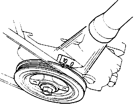 5. Using a timing light, verify that the timing mark on timing cover is aligned with the mark on the crankshaft pulley. Fig. 94