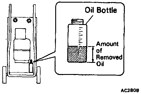- After recovery, the amount of compressor oil removed must be measured and same amount added into the system.